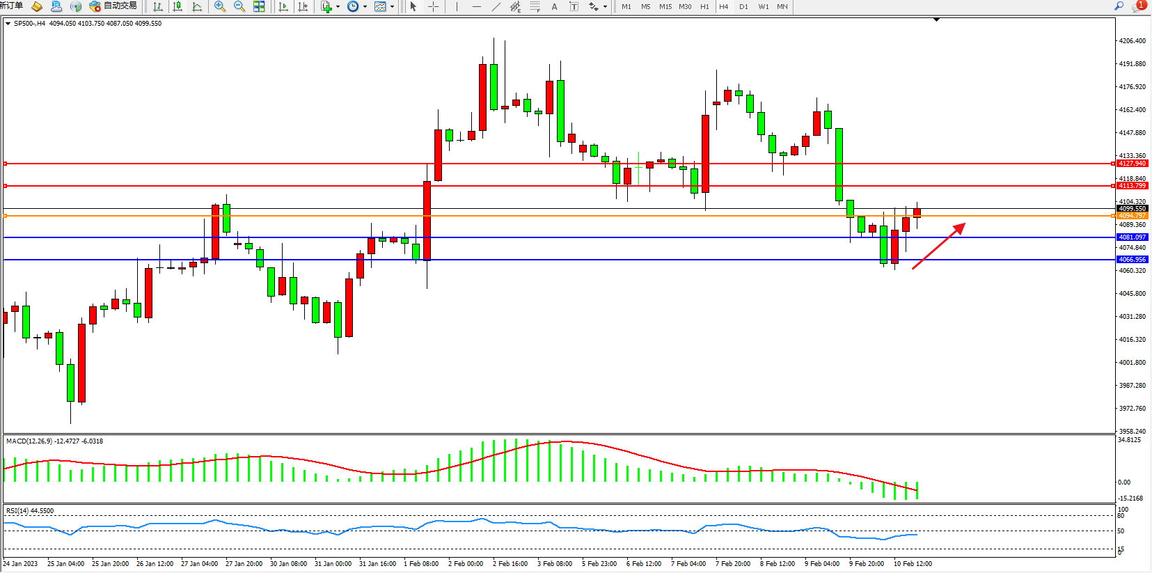 标普SP500——4小时K线图显示: