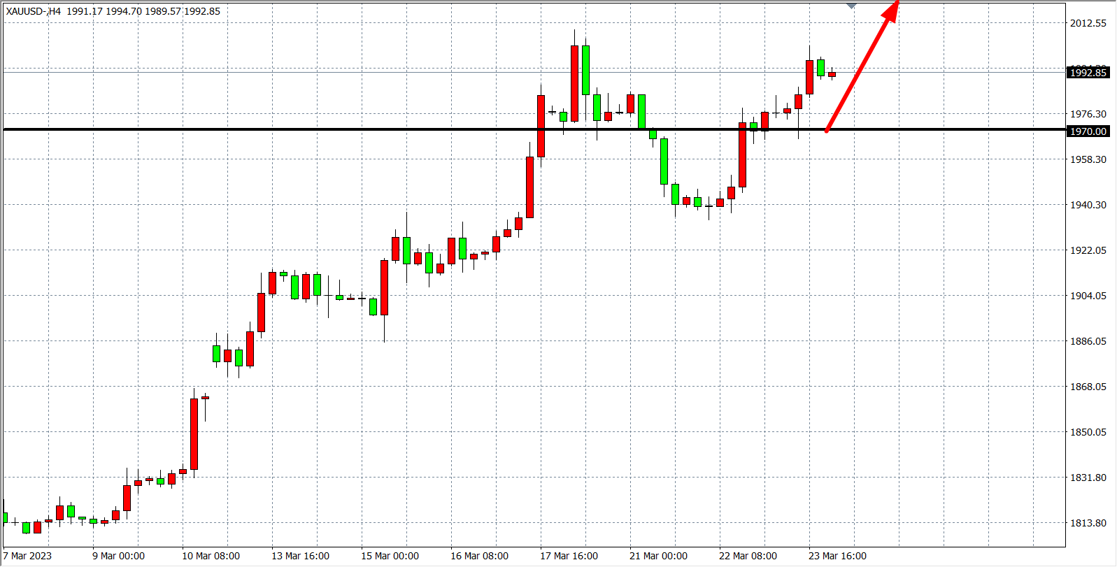 现货黄金XAUUSD四小时图