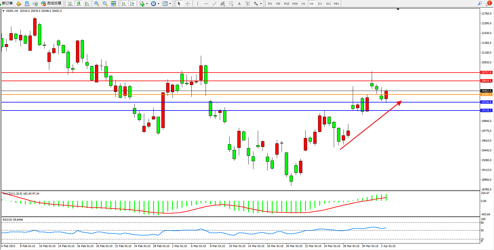 恒指HK50 4小时图