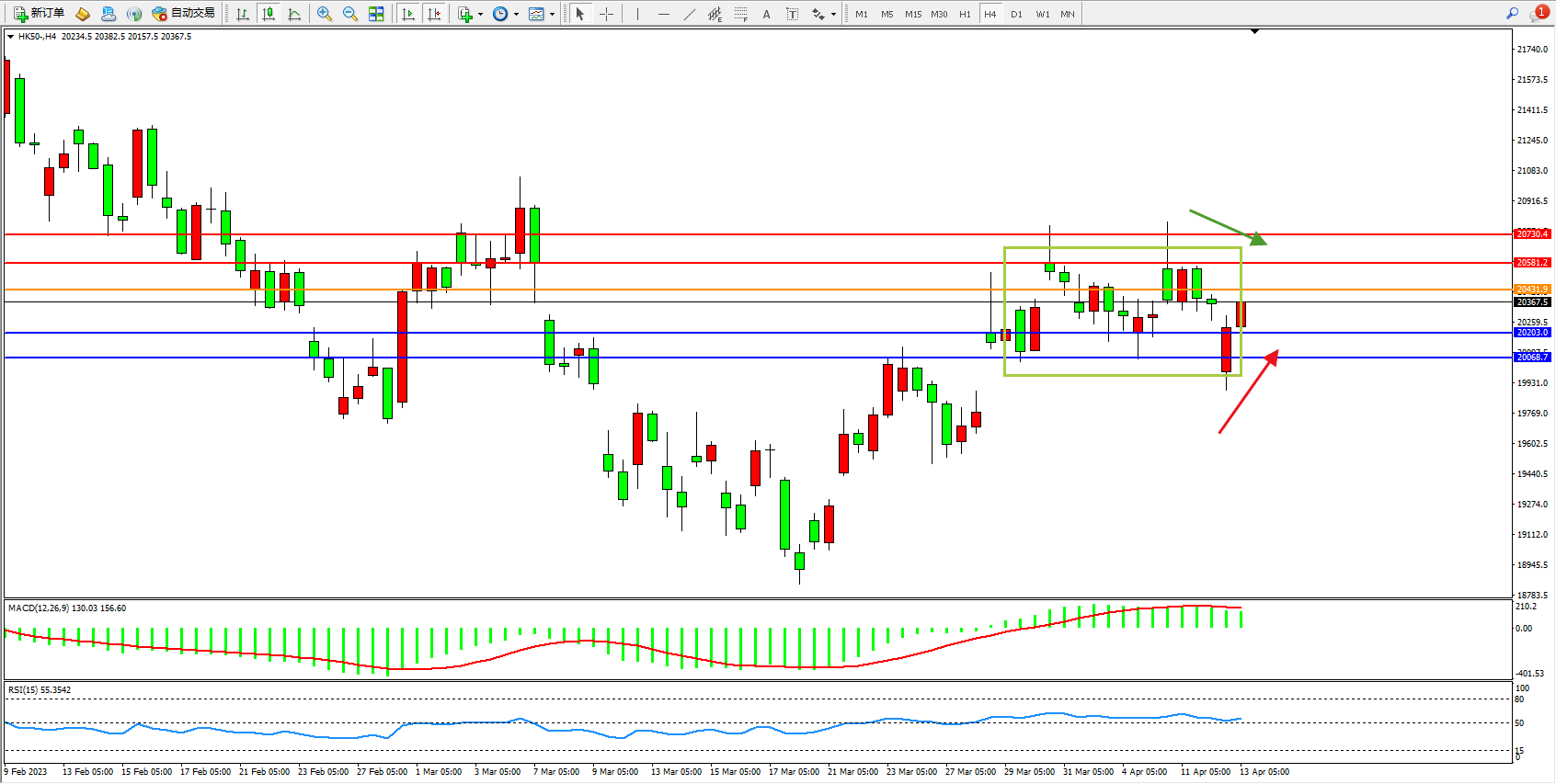 恒指HK50 4小时图