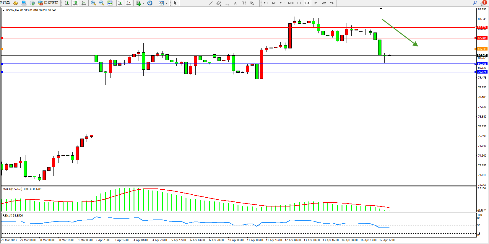 交易策略:81.345下方看跌,目标80.368  79.821