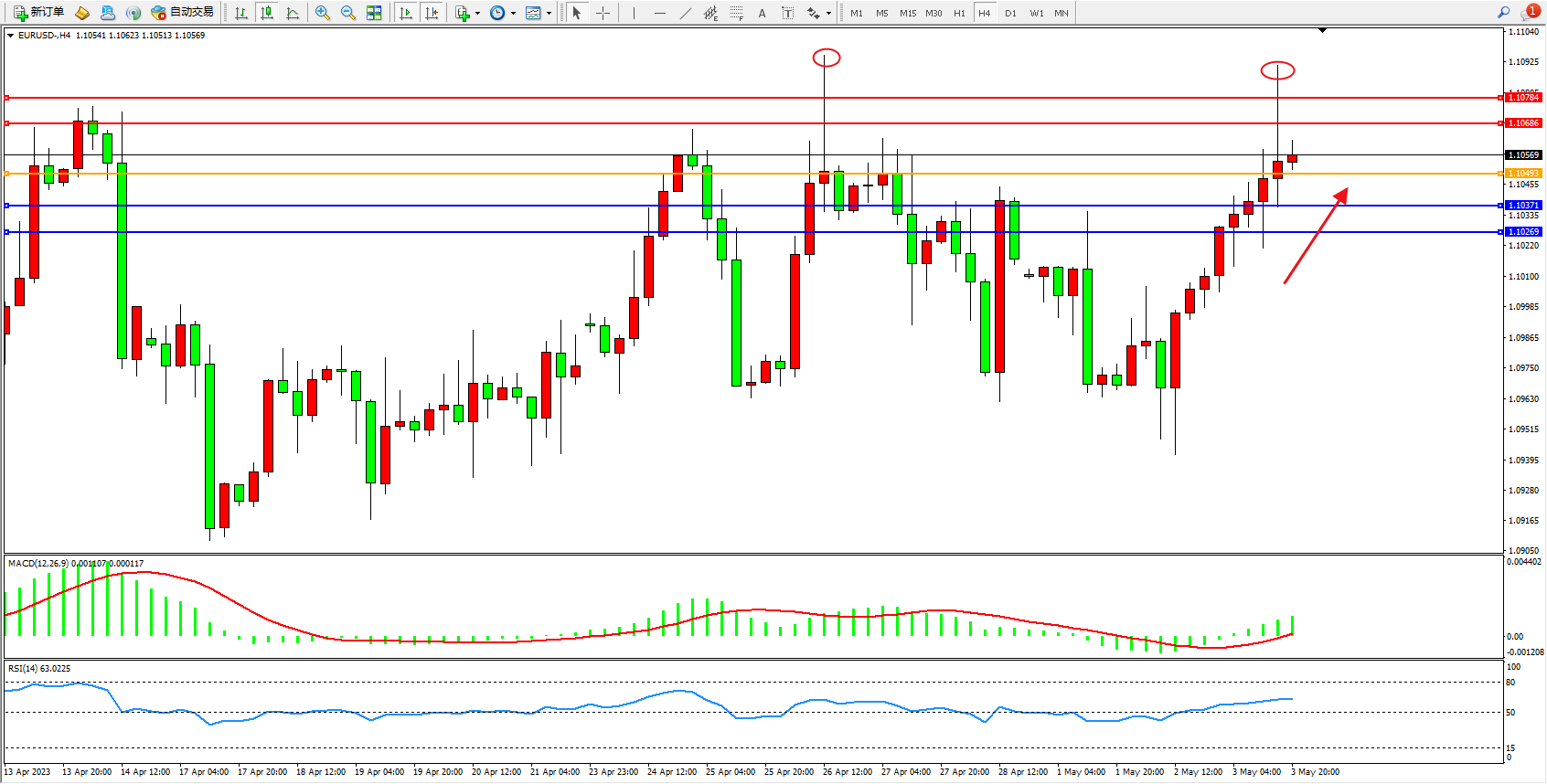 交易策略:1.10493上方看涨,目标1.10686 1.10784