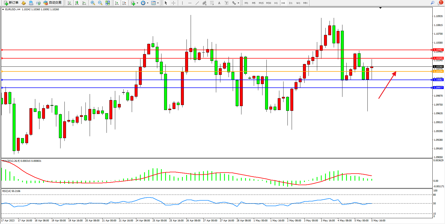 交易策略:1.10194上方看涨,目标1.10369  1.10482