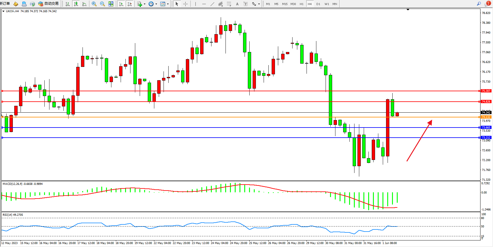布油UKOil——4小时K线图显示: