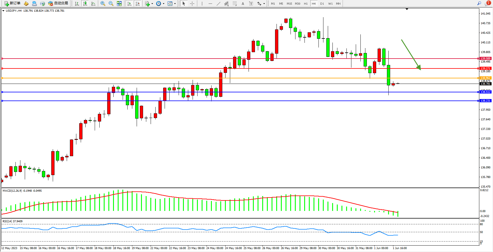 交易策略:138.962下方看跌,目标138.512  138.231