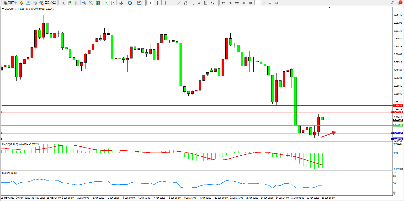 美元瑞郎USDCHF——4小时K线图显示: