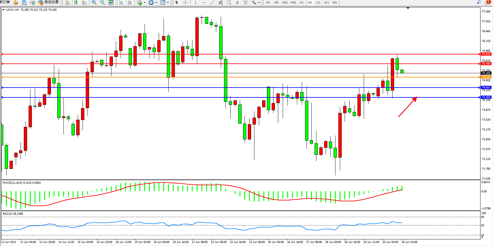 布油UKOil——4小时K线图显示: