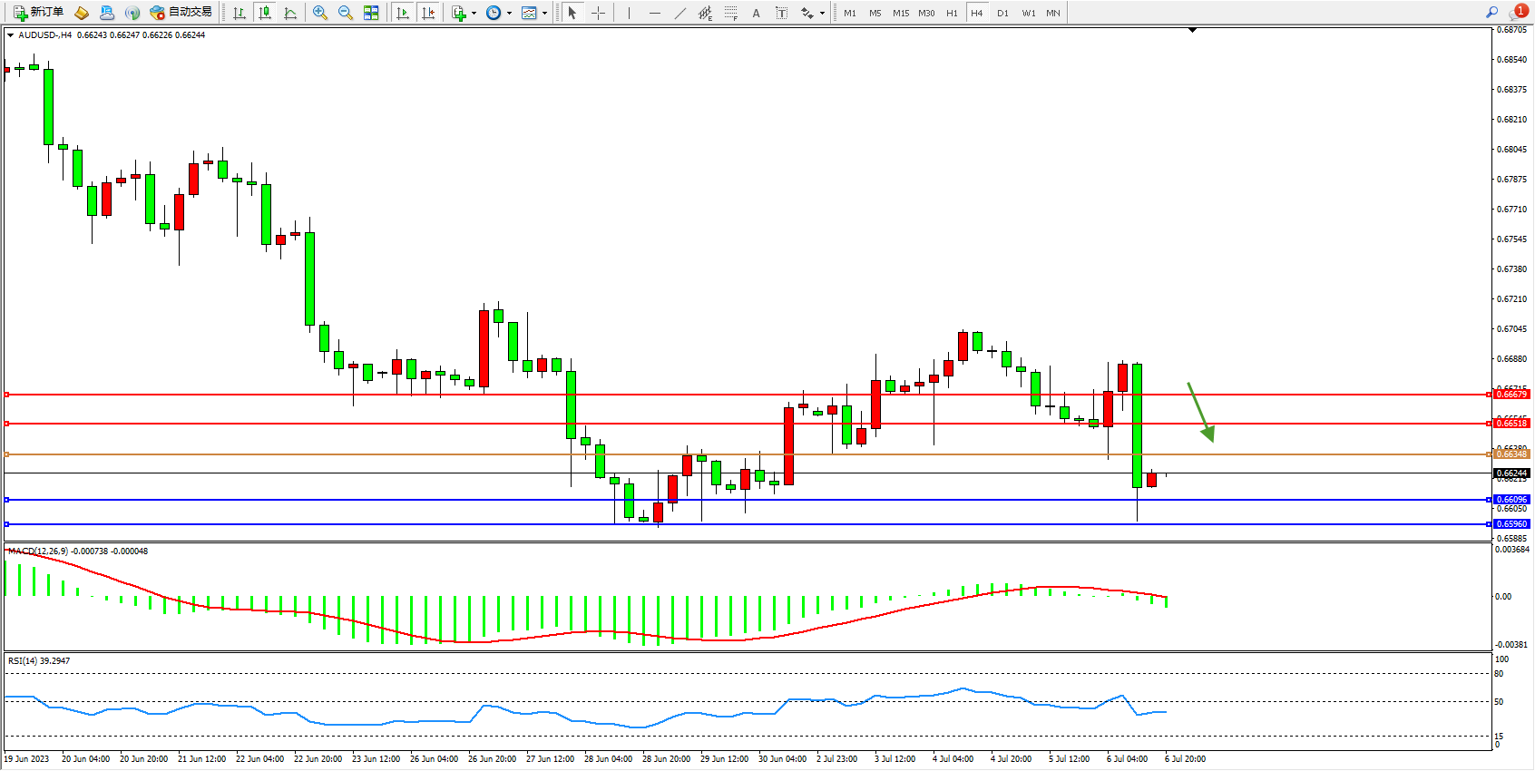 交易策略:0.66348下方看跌,目标0.66096  0.65960