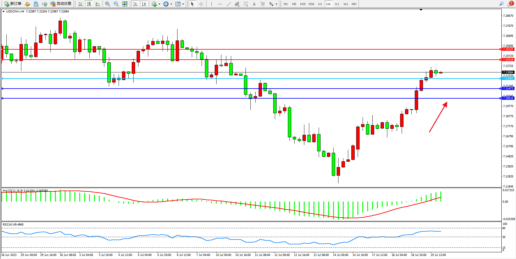 备选策略:7.22462下方看跌,目标7.21473 7.20515
