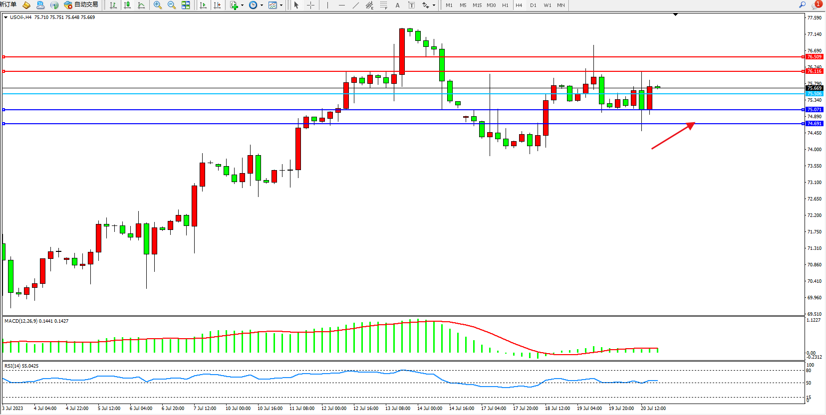 支撑位:75.071  74.691