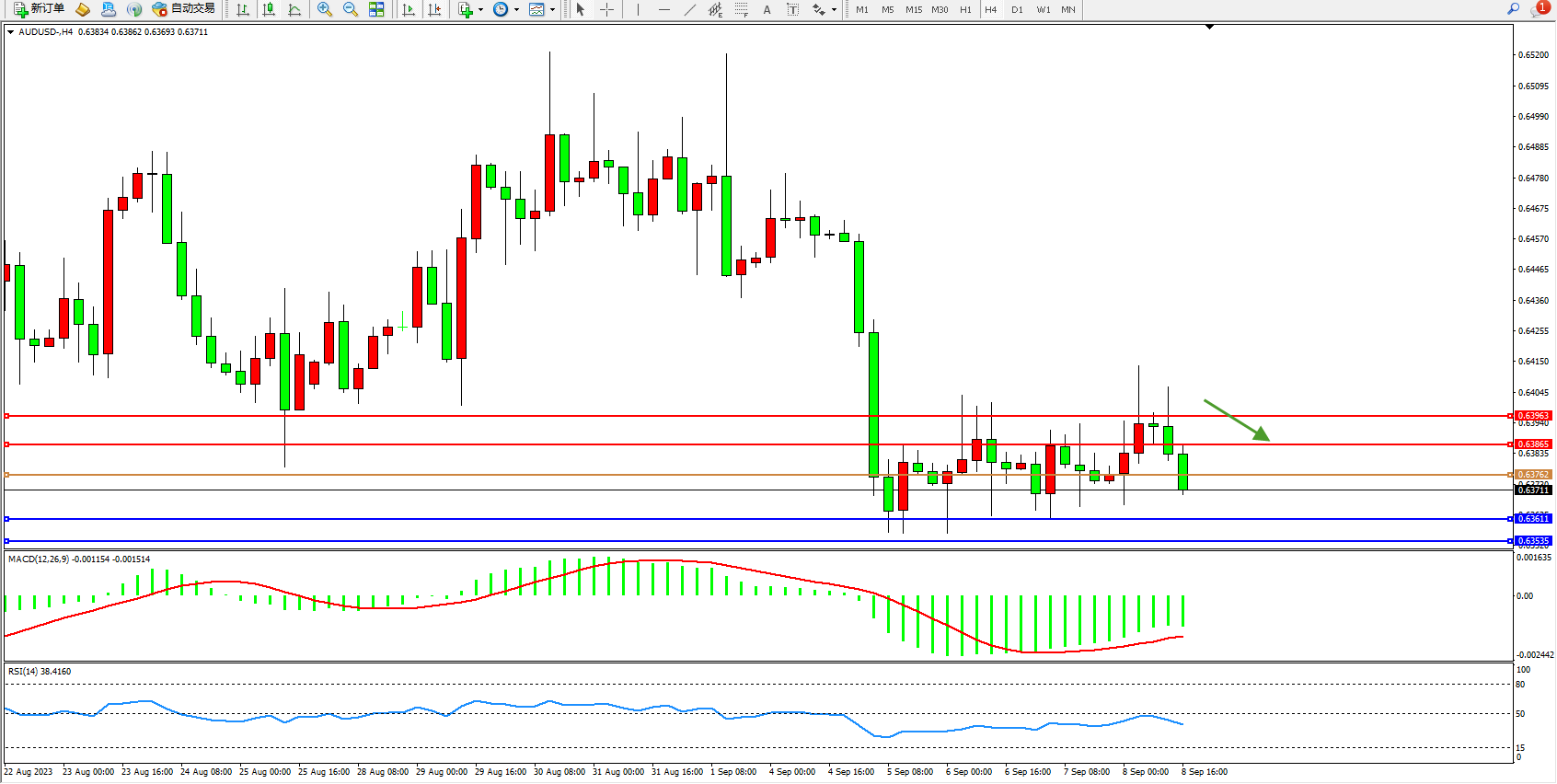 交易策略:0.63762下方看跌,目标0.63611  0.63535