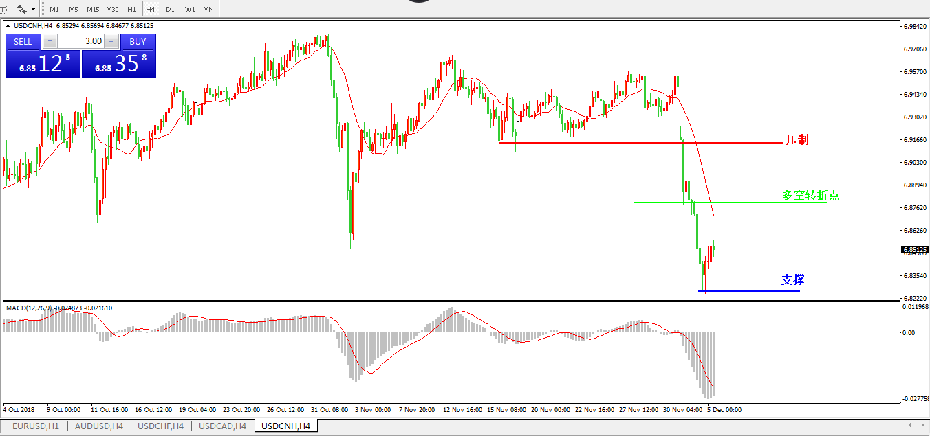 备选策略: 在6.8780之上,看涨,目标价位为6.9106,然后为6.9300。