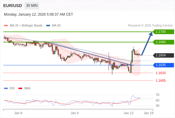 在 1.1635 之上,看涨,目标价位为 1.1680 ,然后为 1.1700 。