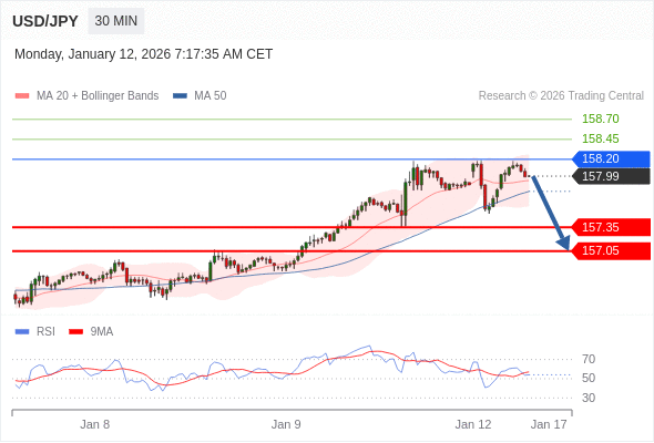 在 158.20 之下,看跌,目标价位为 157.35 ,然后为 157.05 。