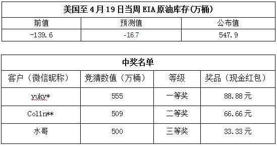 2019年4月第4期“EIA大竞猜活动的中奖结果已出,获奖信息如下: