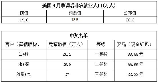 4月非农竞猜活动中奖公告