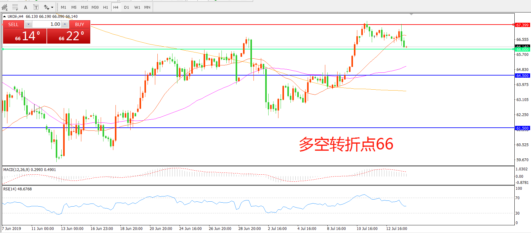 多空转折点:66.00
