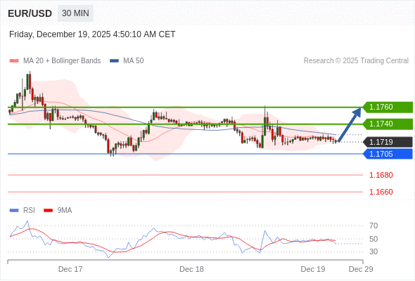 在 1.1705 之上,看涨,目标价位为 1.1740 ,然后为 1.1760 。
