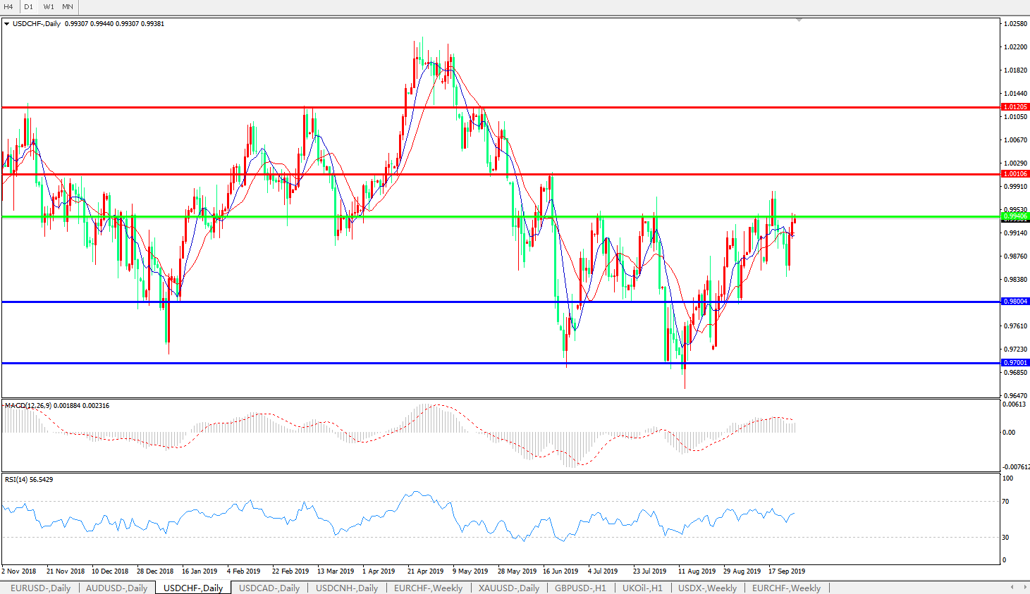 美元兑瑞郎USDCHF 日线图:
