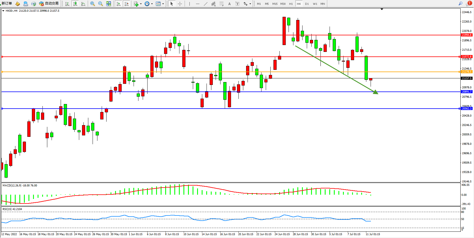 恒指HK50 4小时图