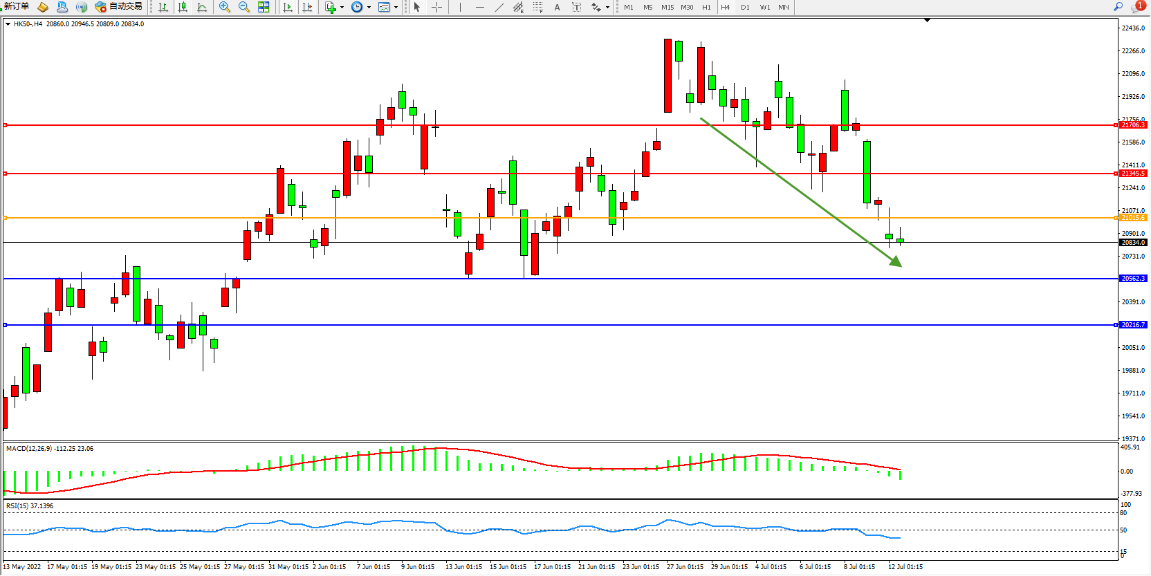 恒指HK50 4小时图