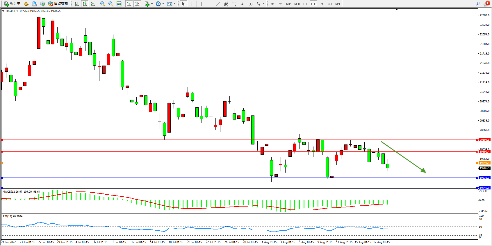 恒指HK50 4小时图