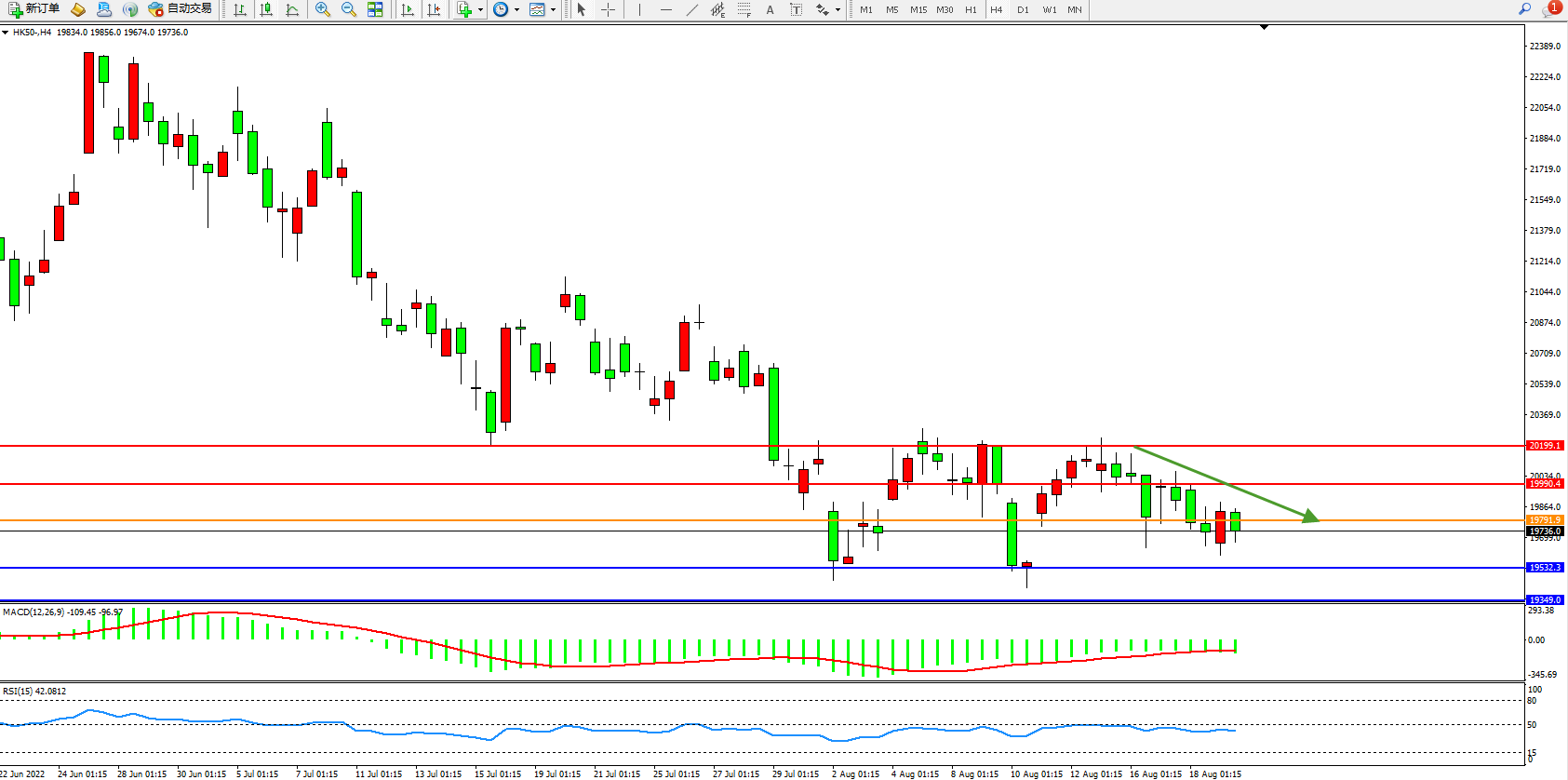 恒指HK50 4小时图