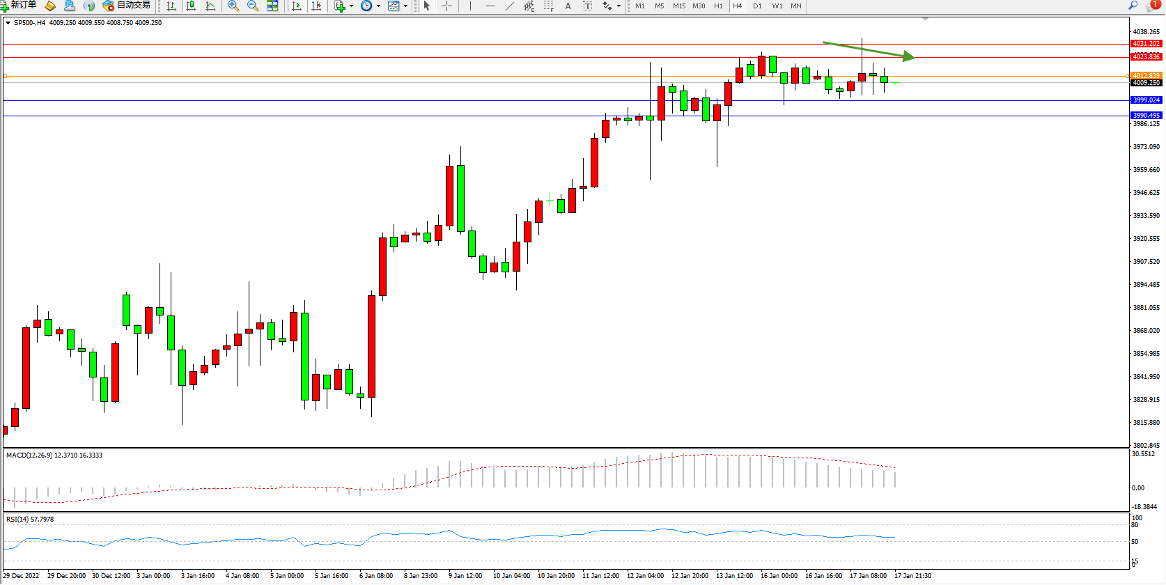 标普SP500——4小时K线图显示: