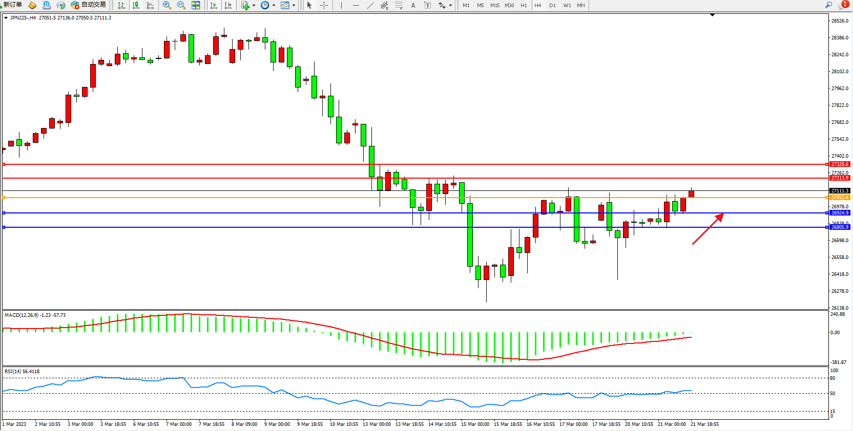 交易策略:27052上方看涨,目标27213  27328